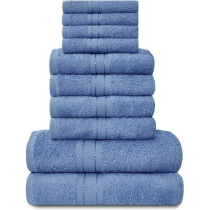 handdoeken, 10-delige set, 100% Egyptisch katoen, 4 x gezicht, 4 x hand, 2 x badhanddoek, premium kwaliteit, zeer waterabsorberende badkameraccessoires, machinewasbaar, blauw