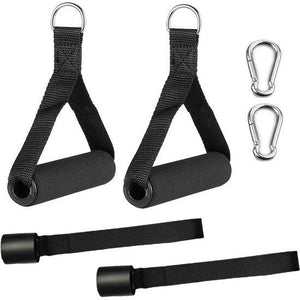 Multifunctioneel fitnessapparaat: de handgrepen van de fitnessapparaten kunnen worden gebruikt op kabels, weerstandsbanden en overal waar je een stevige, comfortabele grip nodig hebt. Of je nu pulldowns, borstvliegen, schouder-, biceps- en tricepsoefeningen doet, onze kabelmachine-handgrepen helpen je om het werk te doen. Professionele kwaliteit en veiligheid: de riem van de trekkoordgrepen is geweven van versleutelde polyestervezels en in drie lagen met dik garen genaaid, waardoor het sterker en kreukvrij is dan conventionele riemen. Ergonomische work-out-handgrepen: met hun extra brede design bieden onze weerstandsband-handgrepen je talloze trainingsmogelijkheden. Ze liggen goed in de hand en bieden een stevige grip. Deze workout-handgrepen zorgen voor een geweldige grip en push/pull-ervaring. Maximaliseer je trainingsprestaties. Ideale kabelbevestiging voor de sportschool: je ontvangt 2 hoogwaardige zwarte karabijnhaken. 2 deurankers van dicht schuim, die aan elke vaste deur kunnen worden bevestigd zonder de deur of de deurpost te beschadigen. De 2 professionele fitnessstudio-accessoires met handgrepen zijn ideaal voor gebruik in de sportschool thuis, die je effectief kunnen helpen om je triceps, biceps, borstspieren en schouderspieren op te bouwen. Tevredenheid gegarandeerd: de robuustheid en veelzijdigheid van deze kabelgrepen maken ze tot een geweldig accessoire voor elke commerciële of persoonlijke sportschool. Het is ook een leuk cadeau voor je vrienden.