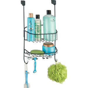 Veel ruimte: het doucheplanchet heeft twee planken waarop shampoo, douchegel en meer kunnen worden opgeborgen. Aan de twee grote en vier kleine haken kunnen washandjes of scheermesjes worden opgehangen. Eenvoudige installatie: zonder boren kan de doucheplank aan de douchedeur of aan de douchegordijnrail worden gehangen. Twee zuignappen zorgen voor een veilige grip. Slim ontwerp: dankzij het rasterontwerp van het badkamerrek kan het water vrij weglopen en drogen de doucheaccessoires snel, waardoor de badkamer tegen overmatig vocht wordt beschermd. Hoogwaardig materiaal: de douchemand is gemaakt van duurzaam metaal en heeft een roestvrije coating. Met twee buitenste haken kunt u handdoeken buiten de douche ophangen. PRAKTISCHE AFMETINGEN De douchemand biedt met een afmeting van 15,2 cm x 25,1 cm x 28,2 cm veel opbergruimte zonder veel ruimte in beslag te nemen. Het kan worden schoongemaakt met een doek.