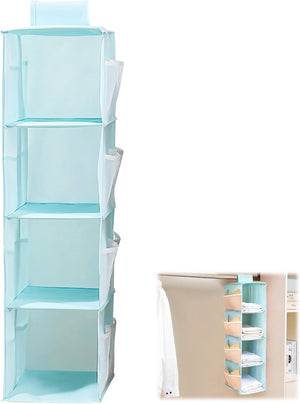 Hangorganizer, 4 compartimenten Hangplank met 12 mesh zijvakken, opvouwbaar en ruimtebesparend, hangende stoffen kast, hangende opbergkast organisator, blauw (22 x 30 x 80 cm)