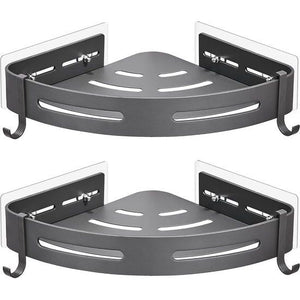 Hoekplank Douchemand Doucheplank Zonder boren Doucheplank Metaal met 4 Haken Doucheplank Badkamerplank met sticker Badkamerplank voor badkamer en keuken 2 niveaus Grijs
