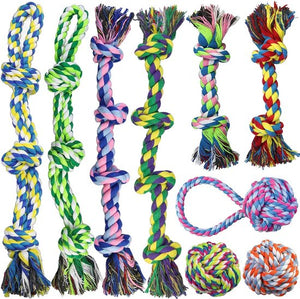 Leuke hondenspeelgoedset: ontworpen voor middelgrote en grote honden. Groter, dikker en duurzamer dan ander speelgoed. Bevat twee (50 cm) lange touwen met 4 knopen, twee 19 inch zware touwtrekken-hondenspeelgoed, een handheld ronde touwbal hondenspeelgoed, twee 2-CONT-touwen en twee balspeelgoed. De verscheidenheid aan stijlen en heldere kleuren kan de zintuigen van de hond stimuleren en hem tot actief spelen en mentale bezigheden stimuleren. Bijna onverwoestbaar hondentouwspeelgoed voor agressieve kauwers: de duurzame hondenkauwspeelgoedset bestaat uit hoogwaardig natuurlijk katoen, is dicht geweven, slijtvast en robuust ontworpen, zodat het hondenspeelgoed bestand is tegen ruw spel en agressief kauwen.