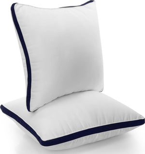 Hoofdkussen: geniet van een comfortabele nachtrust met deze set van 2 witte kussens met witte biezen en een marineblauwe streep in het midden in de afmetingen 60 x 60 cm. Uitstekende ondersteuning: gevuld met super pluche holle vezels zijn deze kussens ongelooflijk zacht en passen zich aan de natuurlijke rondingen van je lichaam aan om hoofd, nek en schouders passend te ondersteunen Ademende hoes: onze kussens zijn verpakt in een hoogwaardige geborstelde stof om hun luxe uiterlijk en gevoel te verbeteren. De kussenslopen zijn ademend en huidvriendelijk en zorgen voor een aangename nachtrust Luxe thuis: de verschuifvrije constructie zorgt ervoor dat de kussens nooit plat worden of wegglijden, ongeacht welke slaaphouding je wilt. Met zijn zachte, pluche gevoel en hoogwaardige constructie geniet je thuis van de luxe van een hotel Onderhoudsinstructies: wij raden aan om de stof punctueel te reinigen of met de hand te wassen om hem gemakkelijk te onderhouden en te onderhouden. Niet in de machine wassen
