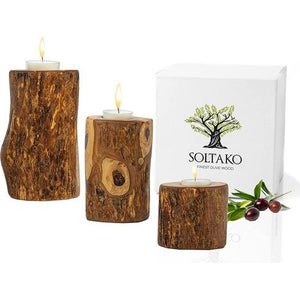 Hoogwaardige rustieke kandelaar van exclusief olijfhout set van 3 kerstdecoratie kandelaar hout theelichthouder woondecoratie