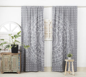 Indian Hippie Gordijn Boheemse Stijl Olifant Mandala Grijs Zilver
