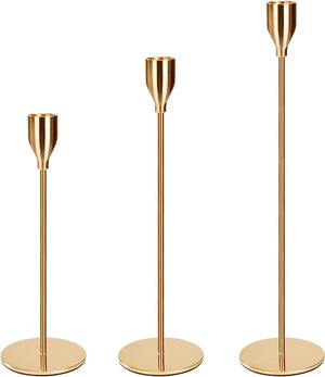 Kaarshouder, kaarshouder, gouden kaarslicht taper kaars, decoratieve kaarshouder van hoog metaal voor feest, bruiloft, diner, kerstdecoratie, 3 stuks