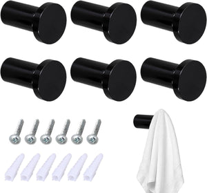 Kapstokken, zwart, 6 stuks enkele kapstokken, handdoekhaken, wandkapstokken, wandhaken, robuust voor het vastschroeven aan kledingkast, keuken, badkamer, kinderkamer (zwart)