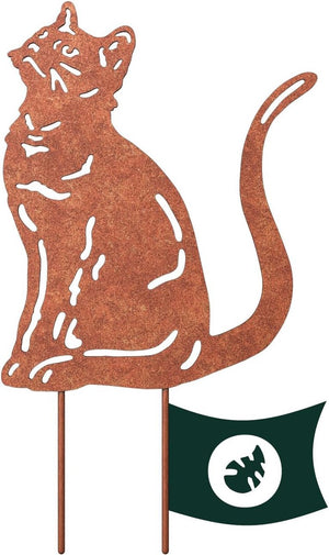 CAT DECOR - De kat van ijzer zorgt voor een natuurlijke sfeer in uw huis in de tuin, het balkon of de ingang van het huis. De decoratieve kat maakt indruk door zijn levensechte uiterlijk en liefde voor detail. OXIDATIE - De tuindecoratiekat wordt in zilveren staat verzonden. Het oxidatieproces van het ijzer begint zodra de tuinpaal buiten wordt geplaatst. De externe weersinvloeden zorgen ervoor dat de roestpatina op de tuinpaal ontstaat. ROESTPROCES - De bloemplug kan worden besproeid met een mengsel van zout en water, of azijn en water. Door het spuiten gedurende meerdere dagen te herhalen wordt het roestproces versneld. DECOR KATTENTUIN - De grote decoratieve kat meet ca. 30,0 x 24,4 cm. De bevestigingsstaaf is ca. 12 cm lang en is niet inbegrepen in de maatinformatie. De metaaldikte van de tuinpaal bedraagt ​​ca. 1 mm.