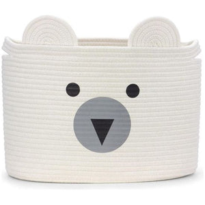 Katoenen kinderopbergmand voor speelgoed en wasgoed, wasmand en speelgoedmand in één, kinderkamerdecoratie witte beer