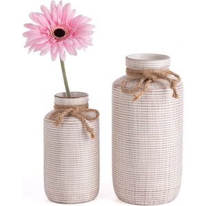• Origineel ontwerp een retailmerk dat zich houdt aan originele ontwerpen. Deze keramische vazen ​​hebben een klassieke kolomvorm met verhoogde, versleten groeven voor textuur, en het jutetouw rond de schouder maakt het rustieker. Deze boerenvazen ​​voegen charme en karakter toe aan uw huis