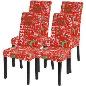 Kerst stoelhoezen voor Kerstmis, 1-, 2-, 4-/6-delige set, stretch, moderne stoelhoezen, decoratie, universele pasvorm voor eetkamer, feest, banket.