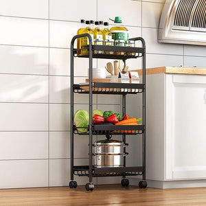 Afmetingen: 45 x 26 x 85 cm. Gewicht: 2,7 kg. Materiaal: roestvrij staal. Stevig en duurzaam. De keukentrolley is gemaakt van hoogwaardig corrosiebestendig metaal. Het roestvrije oppervlak is zwart gecoat. Het is robuust en bestand tegen vervorming. Gemakkelijk te verplaatsen: de wielen kunnen 360° vrij draaien. U kunt de trolley eenvoudig naar verschillende kamers verplaatsen en op elke gewenste plek plaatsen. Als u het niet wilt verplaatsen, houden de 2 vergrendelbare wielen de trolley op zijn plaats. Luchtdoorlatend gaasontwerp: de open gaasopbergmand zorgt voor zichtbaarheid bij het plaatsen van items en is ideaal voor opslag. Het open gaas laat lucht circuleren, waardoor bederf van fruit en groenten wordt voorkomen, stof wordt verminderd en het gemakkelijk schoon te