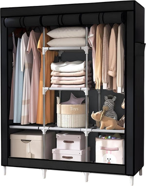 GARDEROBE: Gemaakt van 16 mm stalen buizen en PP-plastic, perfect voor het veilig opbergen van grote hoeveelheden kleding en spullen. Ideaal voor kamers, woonkamers en slaapkamers. EENVOUDIGE MONTAGE: Deze draagbare stoffen kast is uiterst eenvoudig te monteren. Perfect als opvouwbare kledingkast voor iedereen die een snelle en efficiënte opbergoplossing nodig heeft. Ideaal als kast voor een kamer die functionaliteit en stijl biedt. WATERBESTENDIGE EN STOFBESTENDIGE HOES: Onze stoffen kast is uitgerust met een stof- en waterdichte hoes, waardoor hij perfect is als kledingkast, vooral in ruimtes waar extra bescherming nodig is.