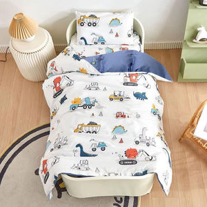 Schattig kinderbeddengoed - Een witte achtergrond zorgt voor een verfrissend gevoel. Het schattige dinosauruspatroon brengt een levendige en dynamische sfeer in de kinderkamer. 2-delige kinderbeddengoedset - 1 dekbedovertrek (100 x 135 cm) + 1 kussensloop (40 x 60 cm). Ideaal voor een kinderbedje. We controleren strikt de grootte van elk product. Maak je geen zorgen over krimp of andere maatproblemen. Puur katoen - Dit kinderbeddengoed is gemaakt van 100% puur katoen en zorgt voor een gezonde slaap. Puur katoen bevat geen schadelijke stoffen. Met dit beddengoed kun je zorgeloos in slaap vallen. Comfortabel kinderbeddengoed: Het hoogwaardige beddengoed overtuigt door zijn elegante materiaal. Het voelt onbeschrijfelijk zacht aan op de huid en tegelijkertijd is dit bedd