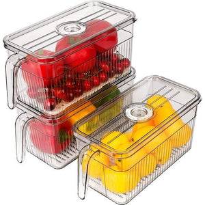 Koelkastorganizer, 3-delige set, koelkastopbergdoos, stapelbaar met deksel en handvat, opbergsysteem voor koelkast, groenten en fruit voor keuken, koelkast, kasten, BPA-vrij