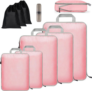 Koffer-organizerset, 9 stuks, Packing Cubes, waterdichte reis-kledingtassen, verpakkingskubus, uitbreidbare paktassen, bagage-organizer voor reizen of thuis, roze