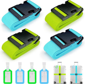 Kofferriemen, 4 stuks, verstelbare kofferband met adresplaatje, 2 kleuren, kruisband, kofferbanden voor koffermarkering, reisaccessoires, bagageriem, bagageriem voor veilig sluiten