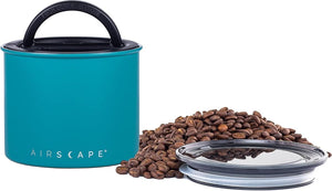Koffiecontainer van roestvrij staal - Voedselopslagcontainer - Gepatenteerd luchtdicht deksel - Behoudt de versheid van voedsel door overtollige lucht (klein, mat turkoois)