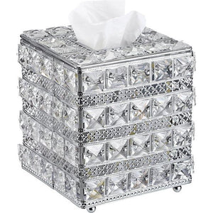 Kristal Zilver Cosmetische Tissue Box Gemaakt van Glas Metaal Tissue Box Tissue Dispenser Tissue Box Decoratie voor Woonkamer Eetkamer Hotel Restaurant Kantoor Vierkant