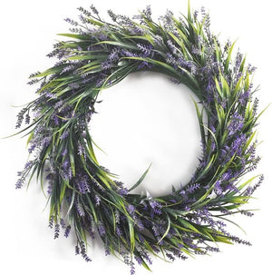 Kunstmatige lavendelkrans voor de voordeur, 18 inch boerderijkransen voor muurfeest bruiloft decoratie binnen of buiten.