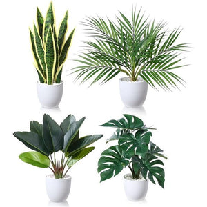 Inhoud levering: de set bevat 4 verschillende kunstplanten. De kleine kunstplanten zijn ca. 40 cm groot. De plastic pot ca. 12 cm groot. Je hoeft ze niet te monteren, pas gewoon de hoek van de bladeren en takken aan met verschillende looks. Realistische en echte aanraking: de kunstplanten zijn ontworpen op basis van echte planten, het oppervlak van de bloempot is gematteerd, wat de aanraking echt en delicaat maakt, je moet ze aanraken om te weten dat het om kunstplanten gaat. Duurzaam materiaal: deze kunstplanten zijn waterdicht, duurzaam en vervagen nooit. Deze kunstplanten zijn een geweldig alternatief voor echte planten en blijven jaar na jaar fris en mooi. Het is verbazingwekkend woondecoratie tegen lage kosten. Kunstplanten maken het leven eenvoudiger: je hebt geen veel onderhoud nodig, ze zullen niet sterven of vervagen. Het zit altijd vol vitaliteit als een levende plant, veeg hem gewoon af met een vochtige doek of stofdoek als ze stoffig worden. Geschikt voor degenen die van planten houden, maar geen tijd hebben om er voor te zorgen. Woon- en kantoordecoratie: aanbevolen als interieurdecoratie. Potplanten zijn perfect geschikt voor presentatie op tafelblad, bureau, nachtkastje, planken, kasten, vensterbanken, salontafels, eettafels, toilettank, werkblad, boekenkast of elke andere kleine hoek die een groen decor nodig heeft.