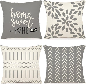 Kussenhoes 40x40 set van 4 linnen decoratieve kussenhoezen buitenkussen bankkussen voor slaapbank slaapkamer tuinbed 40x40cm grijze print