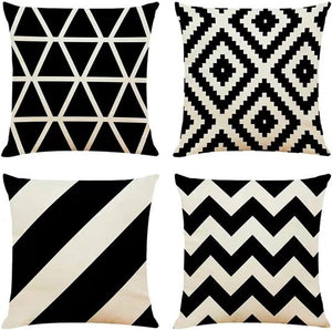 Kussenhoezen, 4-delige set, decoratief, voor sierkussens, geometrisch, vierkant, voor buiten, terras, tuin, bank en woonkamer, 40 x 40 cm, zwart