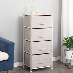 ladekast met 4 laden, organisatorisch meubilair, textiel opbergkast voor slaapkamer, woonkamer of - kleine ladekast met beige, 45 x 30 x 94 cm