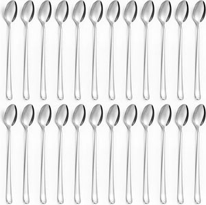 Lang genoeg: de lepel van 18 cm is met de hoogste precisie en functionaliteit gemaakt en beschikt over een verlengde handgreep, die ideaal is om de diepten van hoge glazen en kruiken te bereiken. De lengte zorgt ervoor dat je moeiteloos je verfrissende ijsthee, limonade of een ander drankje kunt roeren, mengen of scheppen, zonder dat er iets wordt gemorst. 24-delige set lepels bestekset: of je nu een bijeenkomst organiseert, een buffet opbouwt of gewoon thuis van een rustige avond geniet, de 24 lepels met lange steel zorgen ervoor dat iedereen zijn eigen zilverbestek heeft. Stabiel en duurzaam: gemaakt van roestvrij staal, latte macchiato-lepels zijn zeer duurzaam, corrosiebestendig, nikkelvrij en produceren geen resten of geurtjes. In de tussentijd zorgt zijn robuustheid ervoor dat hij niet gemakkelijk buigt
