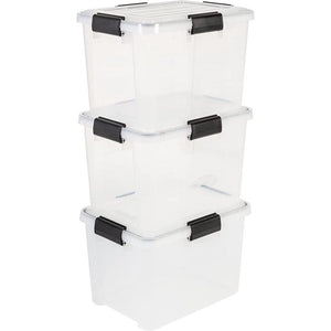 Luchtdichte kunststof doos met deksel en sluitclips, 20l, Set van 3, BPA-vrij, schuur, woonkamer, ddat-SD, helder