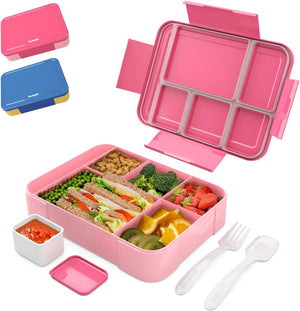 Lunchbox light (6 vakken + bestek) 1330 ml (roze)