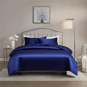Luxe satijnen dekbedovertrek, 200 x 220 cm, 3-delig - glad, glanzend, zijdeachtig, aangenaam glanzend satijn, polyester, beddengoedset met kussensloop 80 x 80 cm - Blauw