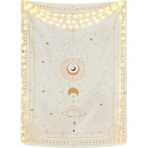 Maanfasen wandtapijt, mysterieuze sterrenhemel, tarotkaarten, wandtapijt, esthetische retro astrologie, muurkunst voor slaapkamer en woonkamer, beige, 210 x 150 cm