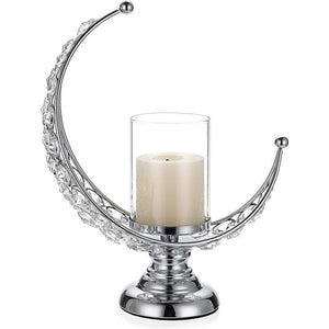 Maanvorm Kristal Theelichtje van glas Metaal Kaarshouder Kaarshouder Kaarshouder voor thuiskantoor Bruiloft Kerstdiner Tafeldecoratie voor stompkaars Zilver