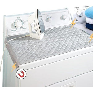Instant strijkplank. Deze hittebestendige mat verandert elk magnetisch oppervlak in enkele seconden in een strijkplank. U hoeft niet elke keer een grote strijkplank op te bergen en op te zetten - perfect voor gebruik op wasmachines, drogers of tafelbladen en zelfs bedden Ideaal voor op reis. Heeft u een reisstrijkplank nodig? De lichtgewicht mat is gemakkelijk in te pakken en te gebruiken in een hotel of Airbnb wanneer u bij vrienden en familie verblijft, of zelfs een poging doet om te strijken in een wasserette terwijl u wacht tot een nieuwe lading droog is. Ideaal voor kleine ruimtes: appartementen, kleine huizen, slaapzalen, campers en meer. Dit alternatief voor een strijkplank kan worden opgerold of opgevouwen, waardoor opbergen een fluitje van een cent wordt. Kan op voorladermachines blijven zitten.