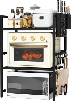 Magnetronrek, metaal, uitbreidbaar magnetronrek, 3-traps magnetronrek, magnetronrek, magnetronrek, magnetronorganizer, keukenrek met 6 haken, zwart