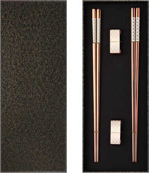 Metalen eetstokjes herbruikbaar 2 paar titanium roestvrijstalen eetstokjes met houder, vaatwasmachinebestendig, lichte eetstokjes in Japanse stijl, cadeauset (roségoud)