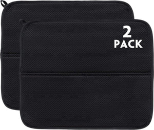 Microvezel afdruipmat voor keuken, 46 x 41 cm, 2 stuks, gootsteen en servies, droogmat, serviesonderlegger (zwart)