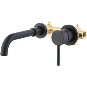 Badkamerkraan met enkele handgreep voor wandmontage met 2 gaten Draaibare uitloop: aan de muur gemonteerde badkamerkraan De zacht gebogen uitloop kan 360° worden gedraaid om aan uw wasbehoeften te voldoen. Wordt geleverd met beluchter zodat er geen opspattend water ontstaat. Matzwarte badkamer-/badkraan Messing constructie, die kwaliteit en duurzaamheid garandeert. Ruimtebesparend: badkamerkraan Ontworpen voor wandmontage om ruimte vrij te maken op uw aanrecht, compatibel met elke badkamerwastafel. Detailafmetingen kunnen verwijzen naar de tweede foto