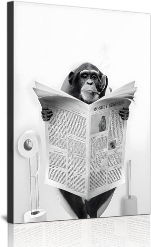 Mooie krant dier muur kunst zwart en wit canvas bedrukte cabine badkamer decoratie bad muur afbeelding, frameloos (aap, 1 stuk - 30 x 40 cm)