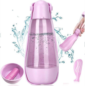 Multifunctionele hondenwaterfles met vuilniszakcontainer en verborgen schop Waterfles Hond Kat Reizen Draagbaar (roze)