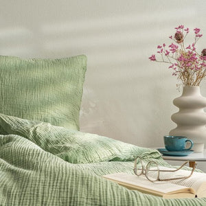 Musselin Bettwäsche 155x220 cm - Bettbezug aus atmungsaktiver Baumwolle, Superweich, Oeko-Tex Zertifiziert (Grün, 155x220cm Bettbezug)