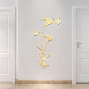 Muurtattoo bloem 3D DIY spiegel muursticker voor woonkamer muursticker voor slaapkamer wanddecoratie voor bank achtergrond TV muur achtergrond (59 x 31 inch, goud)