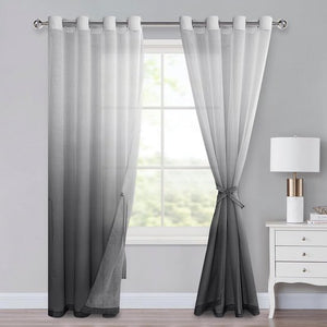 Ombre-gordijnen met oogjes kleurverloop voile pure gradiëntgordijnen set van 2 voor slaapkamer en woonkamer lusgordijnen met striksluitingen 225 x 140 cm (h x b) grijs