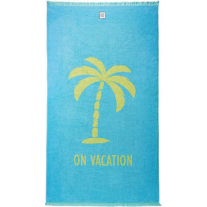 On Vacation Strandhanddoek, XXL, 100 x 180 cm, groot, blauw, lichtblauw, 100% katoen, gecertificeerd, duurzaam geproduceerd in Portugal