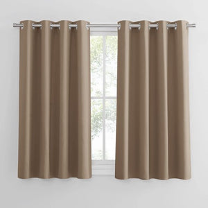 Ondoorzichtige gordijnen met inslagringen, thermogordijn kinderkamer, gordijnen, ondoorzichtig, verduisteringsgordijn, gordijnen, set van 2, H 145 x B 140 cm, cappuccino