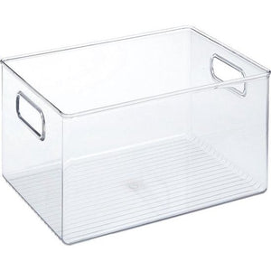 Opbergdoos met handvat, extra grote kunststof bak voor in de kast of koelkast, voedselbak zonder deksel, transparant