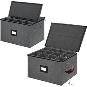 Opbergdoos voor wijnglazen, 2 stuks, bewegende glashouder voor wijnglazen, vouwdoos met scheidingswanden, glazen, opslag voor 24 kristalglaswerk, kristalglaswerk (44 x 33 x 25 cm, donkergrijs)
