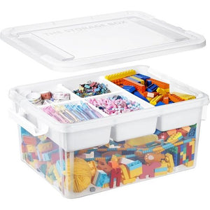 【Speelgoedopbergdoosformaat】 - Het pakket bevat een speelgoeddoos met verwijderbare trays. De afmeting van de opbergdoos is: 40,5 x 29,5 x 18,5 cm; Het formaat van het dienblad is: 37,5 x 28 x 7 cm. Het verschil met andere speelgoedopbergboxen is dat de deksel van onze speelgoedopbergbox is gemaakt van spaanplaat met bouwstenen bevat geen schadelijke ingrediënten. 【Ideaal ontwerp】 - Onze speelgoedorganizer wordt geleverd met een verwijderbare scheidingswand met vijf compartimenten voor kleine voorwerpen zoals pennen, clips, pads of tape. Het kan uw spullen effectief classificeren en organiseren. De grote doos aan de onderkant is geschikt voor alles wat u nodig heeft wilt organiseren. Dankzij het transparante kleurontwerp kun je het speelgoed erin gemakkelijk onderscheiden 【Stapelbare containers】 - In tegenstelling tot andere opslagcontainers zijn onze speelgoedorganizers gemaakt van verdikt plastic. Het is duurzamer en steviger. En ze kunnen op elkaar worden gestapeld om ruimte te besparen en je kamer netjes te houden. Als hij vuil is, hoef je hem alleen maar voorzichtig af te vegen met een vochtige papieren handdoek en hij zal heel schoon zijn.