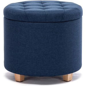 Opbergkruk, ronde zitting met deksel, zitkist, voetenbank opbergkist, linnen, 44 l, 45 x 45 x 41 cm, marineblauw